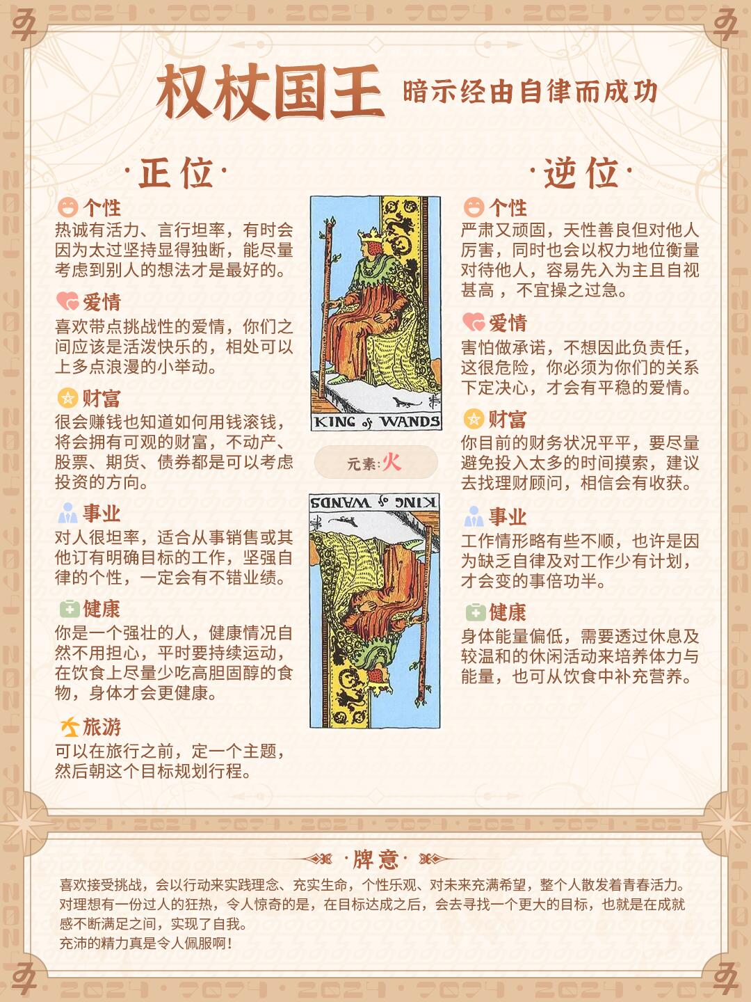 权杖国王是一个开国者与建国者,他的坐姿仿佛随时准备着站立起来,代表他有极强德行动力。